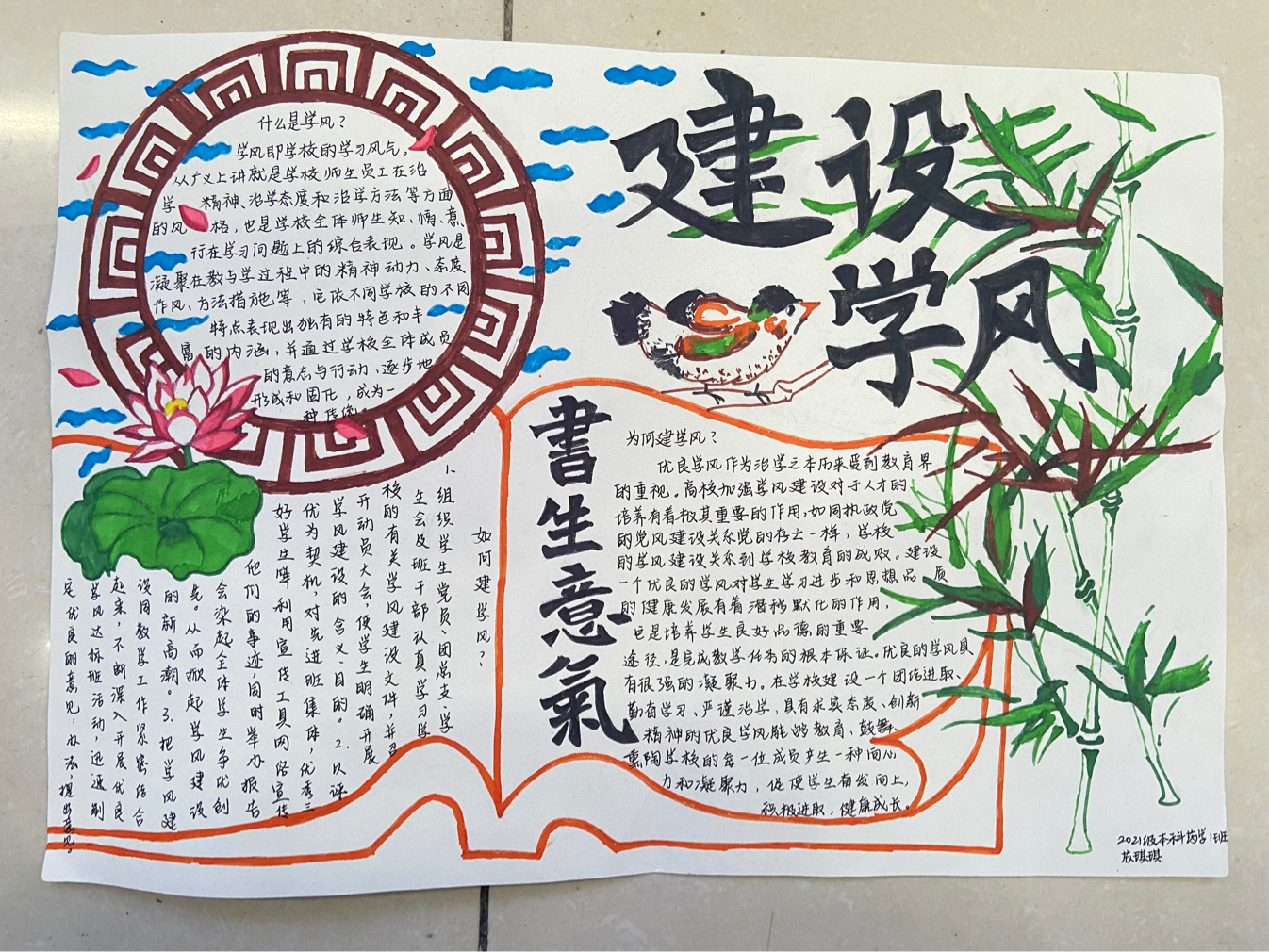 当文明的种子播进21世纪的沃土,大家依然坚信一个集体优良学风的建设工作在这片广阔的领域里展示着独有的风采。学风建设是学校发展和创新的永恒主题,是一所大学的灵魂和气质,也是立根之本。2021年11月21日,由共青团山东现代学院委员会主办,山东现代学院药学院承办的“建设优良学风·沉淀收获成长”手抄报评选活动在德润楼各班级举办。