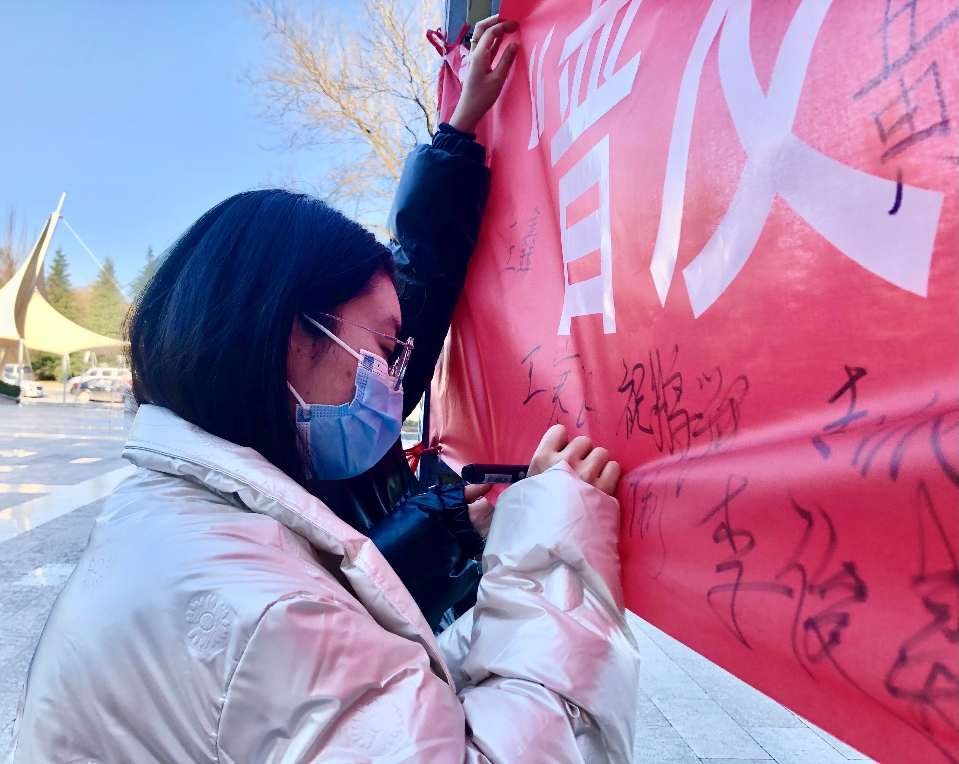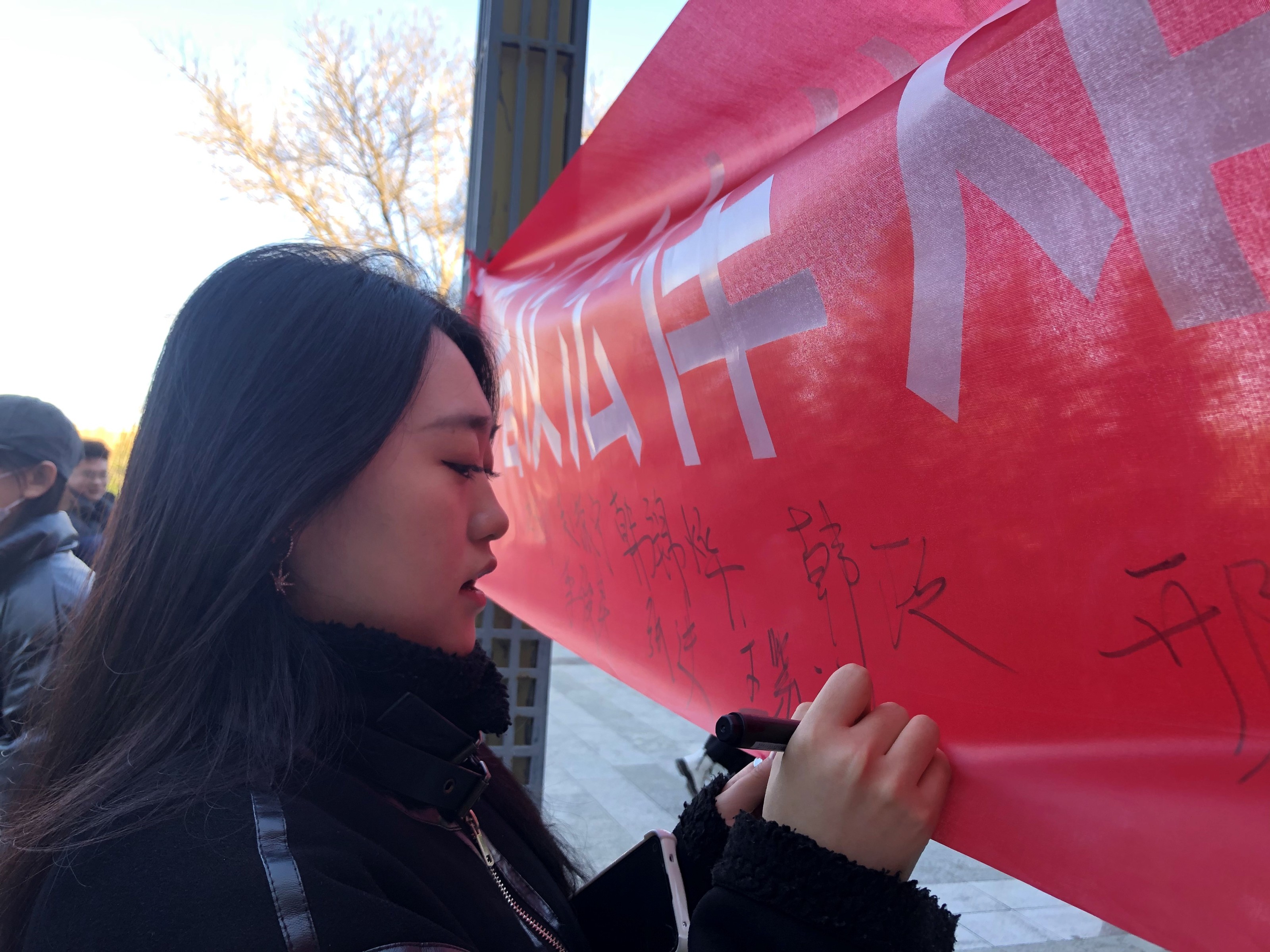 最后,现场工作人员邀请此次答题人员在“普及法律知识·建设和谐校园”横幅上签字署名,并拍照留念。