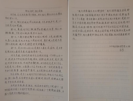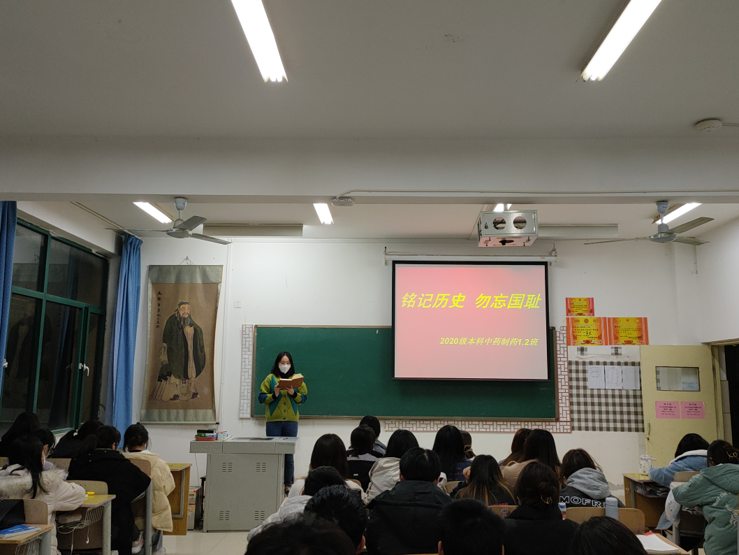 2020级本科中药学2班的吕莎与同学们分享自己的感受:“作为新时代青年理应警钟长鸣,勿忘国耻,具有危机意识和忧患意识,化悲痛为力量,把爱国精神和国耻危机转变为报效祖国的实际行动。”