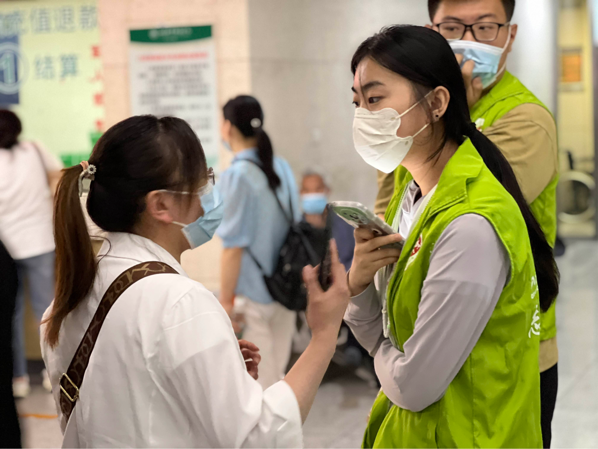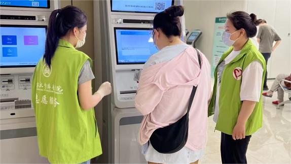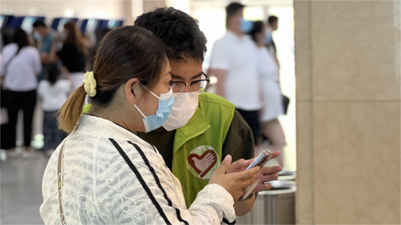 志愿者们在经过工作人员的系统培训后,开始了这场充满温度的志愿服务之旅。志愿者们主动为患者服务、协助老年人办理建档导诊手续,合理分流疏导。志愿者们在导医台、自助机旁、扶梯上下入口处、楼层咨询台等位置,耐心地帮助患者使用自助设备预约取号,并及时提供就诊咨询及引导服务。满意的回复和热情的服务让患者不再无助,拥堵的人流被迅速疏导,患者从中感受到了百年齐鲁的人文关怀。