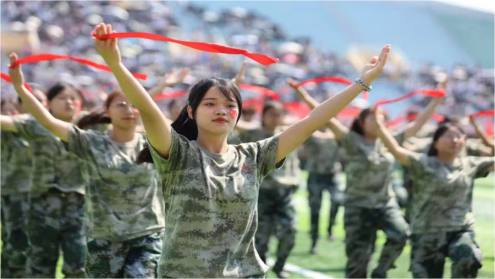 步伐整齐划一、口号响彻云霄、眼神坚毅自信