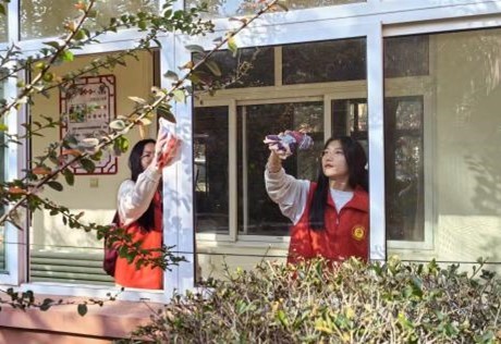 时光不老,久久念孝。尊老敬老是中华民族的传统美德,也是山东现代学院的文化所在。活动的志愿者们分工明确,尽职尽责。有的志愿者在打扫落叶,也有的志愿者在擦拭玻璃,整理完卫生后,志愿者共同坐下来和老人们唠家常,感受岁月的静好。