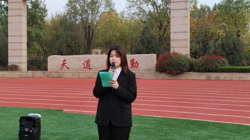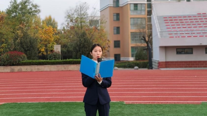 第三项:药学院辅导老师代表周亚楠老师进行国旗下发言