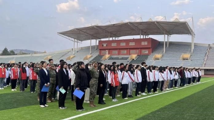 本次升旗仪式由2022级本科中药制药班常家豪同学主持,参会人员有山东现代学院药学院办公室主任王威主任,部分2022级学生干部代表,2023级全体新生及新生辅导员。