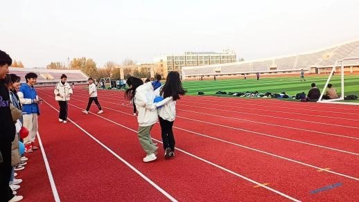 第一个板块是团队接力,该板块旨在考查同学们的相互配合能力以及团队合作能力。项目涵盖两人三足,背对背夹气球,跳绳,沙包投篮、摸石头过河,比赛采取接力形式,记总时长排名。