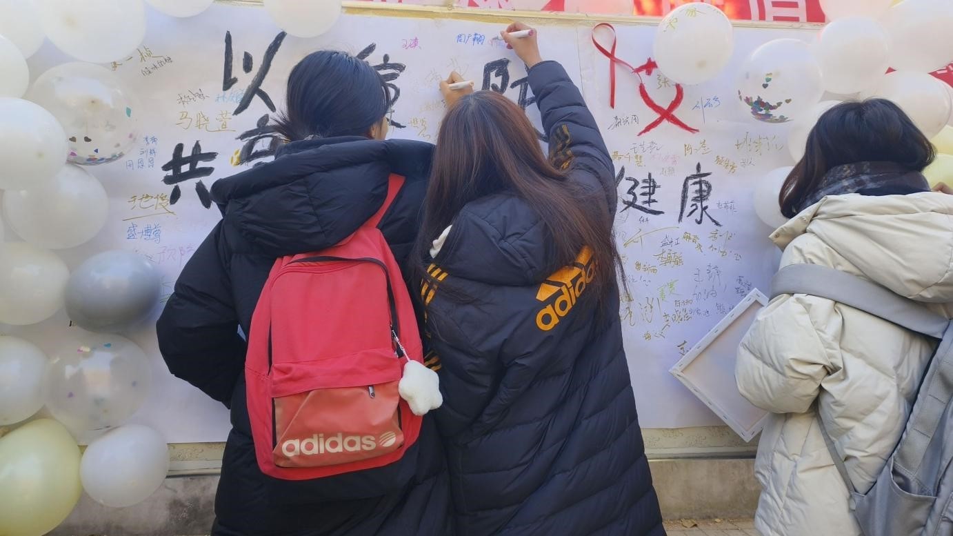 活动中,志愿者们从艾滋病症状、艾滋病流行现状与危害、如何预防艾滋病等方面向同学们介绍了艾滋病的基本知识和预防措施。同时也倡导同学们树立正确的生活态度,提高防艾意识,养成健康的生活方式。活动结束后,同学们有序排队,在“以爱防艾·共享健康”签名墙上郑重地签下自己的名字,以此表达共同防艾的决心。
