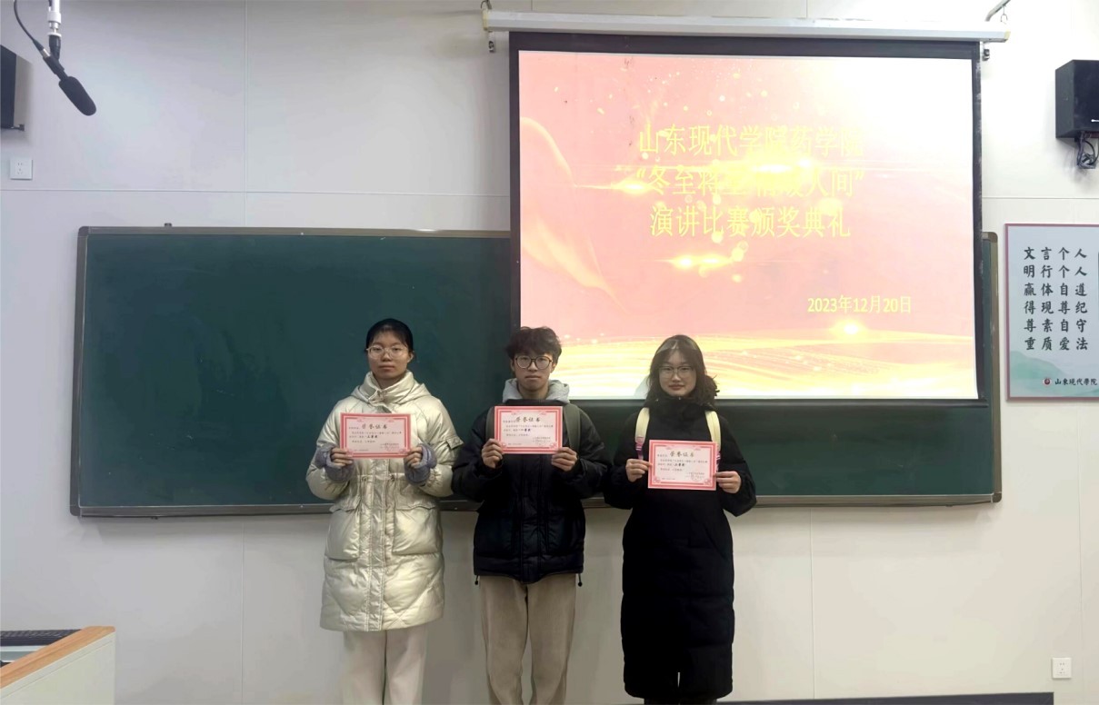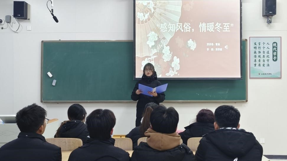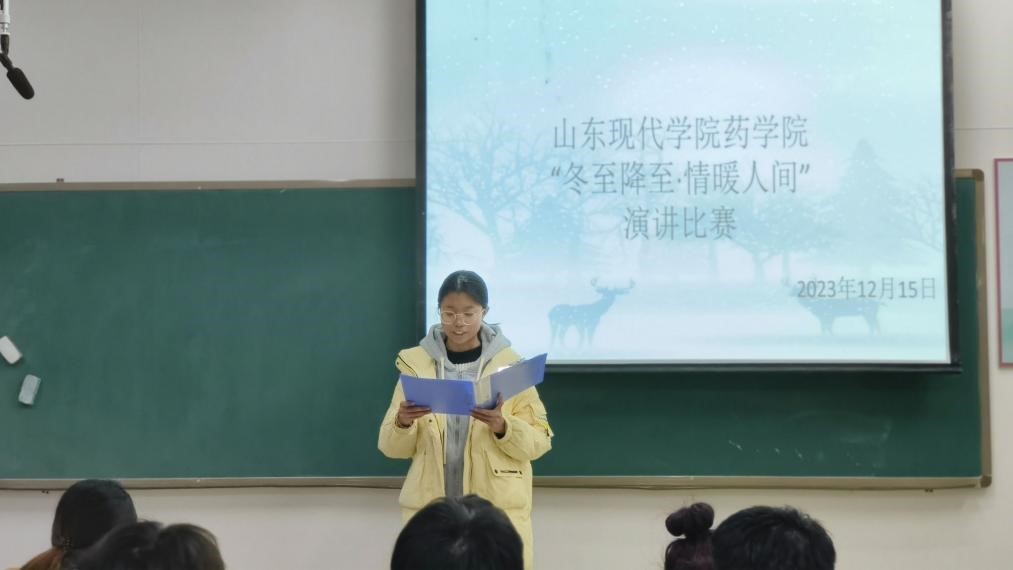为传承和弘扬中华优秀传统文化,增强广大现代学子的文化认同感,丰富校园文化活动,近日,药学院在德润楼508室举办“冬至将至·情暖人间”演讲比赛。