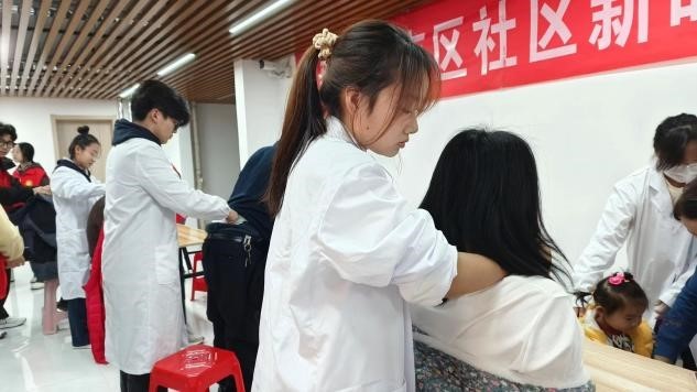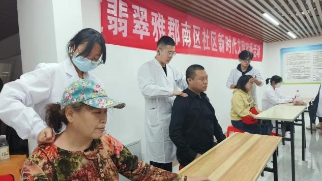 此次活动中,志愿者们为社区居民提供了推拿、健康知识普及等服务。志愿者们有序按照分工内容接待社区居民,耐心询问近期身体状况,初步判断身体情况,随后根据推拿知识和实际需求进行推拿诊治,在居民的反馈下不断调整推拿节骤,并为居民答疑解惑,对肩颈部、腰背部不适,睡眠问题以及高血压等常见病,进行了健康指导,得到了老人们的一致好评。