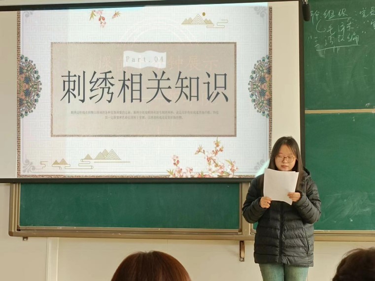药学院的于谦同学为大家带来了一场关于刺绣工艺的精彩分享。她通过ppt中精美的刺绣作品展示了这门古老而精致的手艺,并讲述了刺绣对于她生活的重要意义。一针一线间,绣出的是生活的色彩,更是对美好生活的向往。于谦同学的分享让在场的同学们感受到了传统工艺的魅力,也激发了大家对传统文化的热爱和尊重。