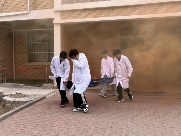 演练现场模拟公寓楼内着火的突发状况,值班人员紧急启动消防应急疏散预案。现场滚滚浓烟不断冒出,火势急速蔓延。公寓内的工作人员迅速组织学生从消防通道有序逃生离开。师生们按照事先演练的步骤,紧张而有序地撤离至安全地带。整个过程中,学生们展现出了高度的自律性和组织性,在紧急情况下,他们不仅保持了良好的秩序,还充分展示了药学院师生自救互救的专业素养。