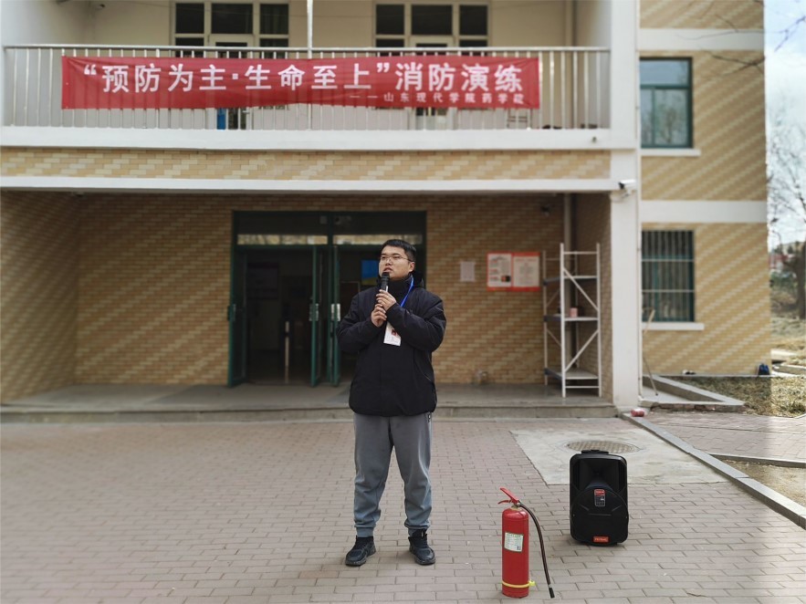演练活动结束后,药学院办公室主任王威向在场师生再次强调了应急逃生的要领及注意事项,并向师生们现场演示了灭火器的使用方法、具体操作步骤等,帮助师生们更加深入地了解了消防安全知识和应对火灾的方法。