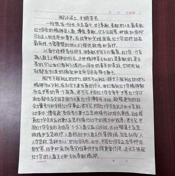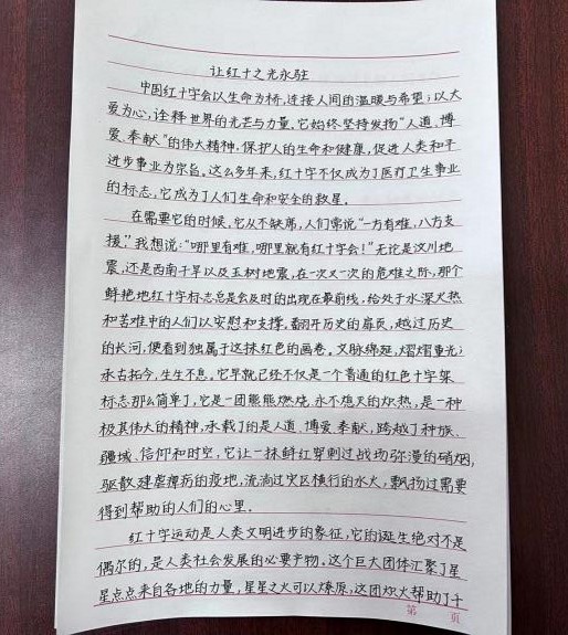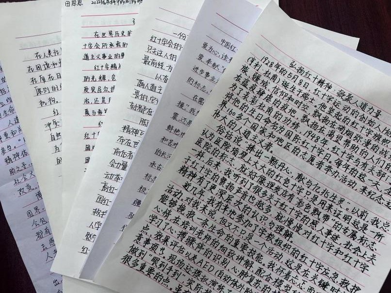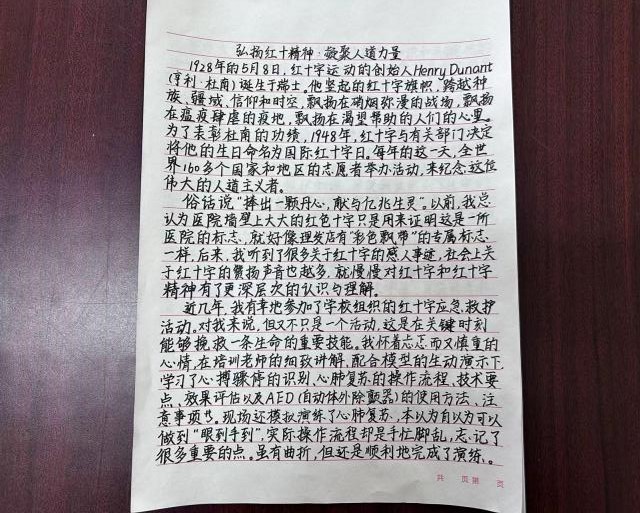 同学们热情高涨,积极参与。他们用自己的笔触,描绘出了一幅幅感人至深的画面,讲述了一段段充满人道主义情怀的故事。有的同学通过亲身经历,讲述了在红十字会志愿服务中的点滴体会;有的同学则从历史事件入手,深入挖掘红十字运动的发展历程和伟大精神;还有的同学则从理论层面出发,深入探讨了红十字精神的内涵和价值。