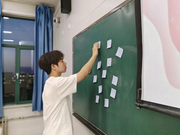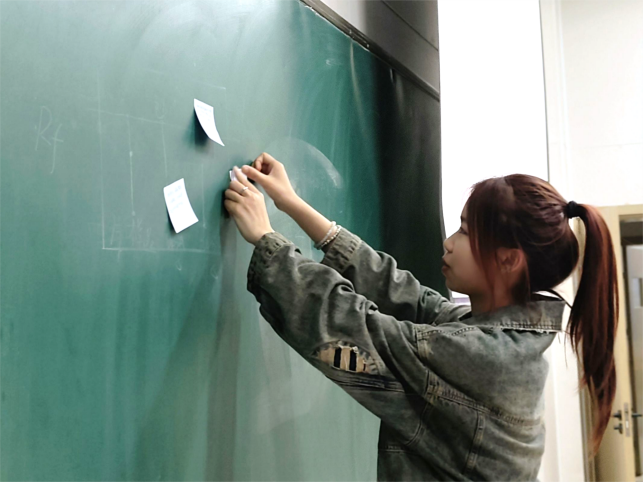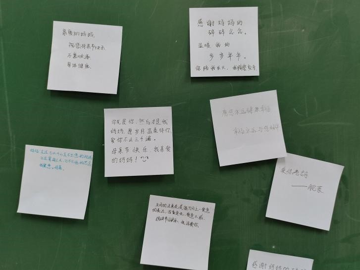 随后,同学们纷纷走上讲台,将自己的卡片粘贴在黑板上进行展示。这些卡片或温馨或创意,每一张都凝聚了制作者对母亲的深厚感情。