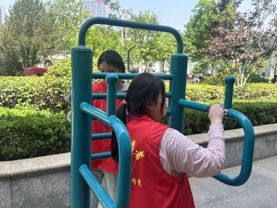 志愿者们对广场进行了全面清扫,清除了积存的垃圾和杂草,并对广场上的公共设施进行了擦洗和消毒,确保市民在休闲娱乐时能够享受到一个干净、整洁的环境。