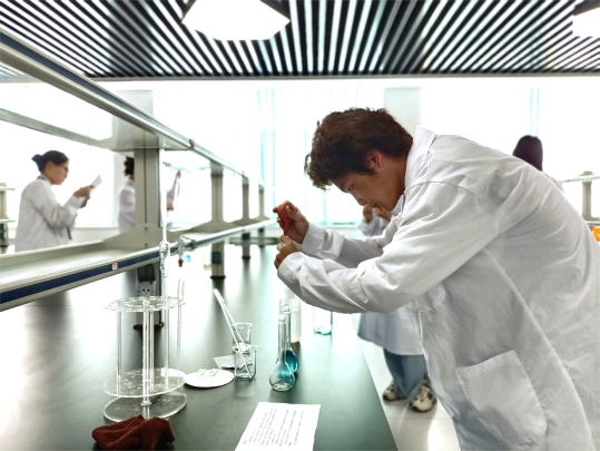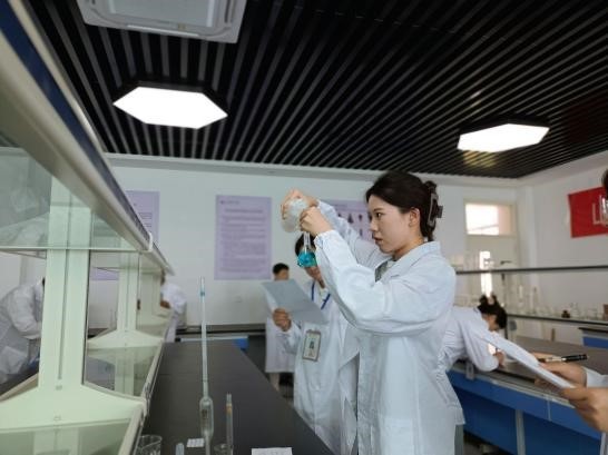 比赛现场,选手们全神贯注地投入到实验中,从试剂称量到溶解、移液,再到定容、第二个环节的溶液稀释……他们每一步都严谨细致,稳中求进,无不展现出扎实的化学知识和实验技能。