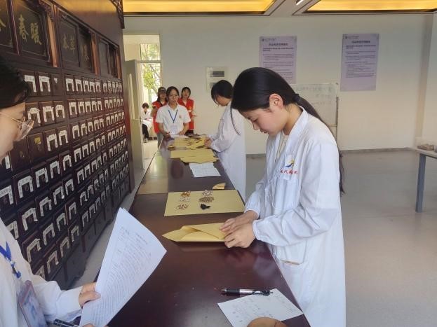 选手们在有限时间内,根据处方,准确找出相应的中药材,并使用传统的戥秤进行称重和包装,面对复杂的药方和繁多的中药饮片,选手们展现出了非凡的应变能力和精准的操作技巧。他们仔细审方、精确称量、熟练调剂,确保每一剂中药都能发挥出最大的疗效。