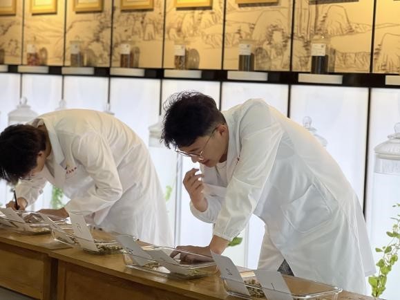 比赛现场,参赛选手们通过眼看、手摸、鼻嗅、口尝等多种方式,对中药材进行精准鉴定,展现了他们扎实的中医药理论基础和丰富的实践经验。