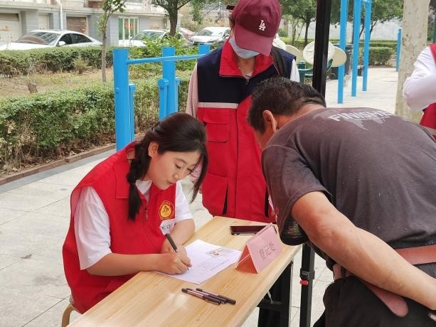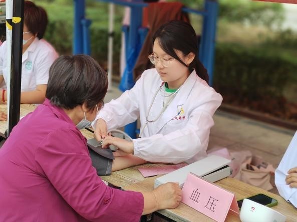 仪式结束后,志愿者们在圣井街道新城社区开展社区义诊活动。
