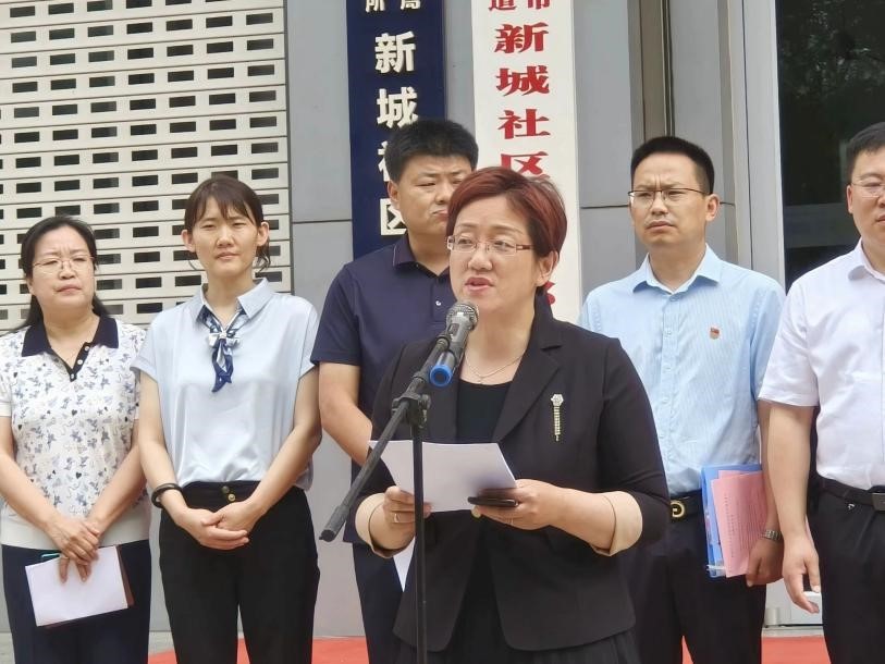 仪式最后,孟令伟主任作总结讲话。他对共建大学生德育实践基地寄予希望,希望通过山东现代学院药学院和新城社区的密切合作,能够让更多的青年学生积极投身到社区建设的实践中去。