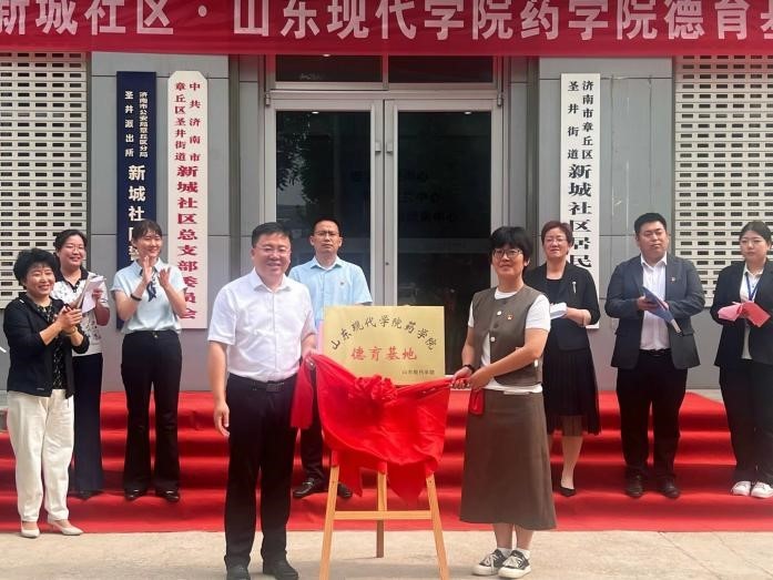 随后,刘玉芹院长与孟令伟主任共同为山东现代学院药学院德育基地揭牌。