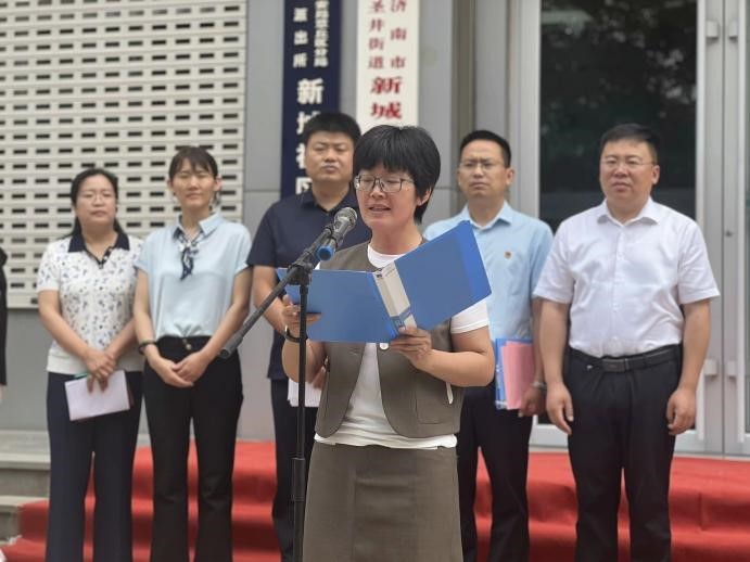 李丽苹主任就新城社区与山东现代学院药学院联动项目作介绍,重点介绍圣井街道与山东现代学院的文化渊源,让此次联建活动有广度、有深度。她强调,社区的发展离不开青年人才的支撑,校社共建是最好的德育培养方式之一,也是提高学生综合素质、推动教学教育创新的有力保障。街道将以这次德育基地揭牌为契机,进一步拓展新城社区与山东现代学院药学院的合作渠道,深入推进校社共建步伐。