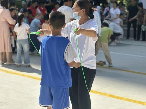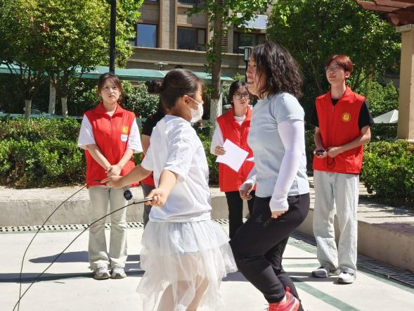比赛项目丰富多彩,既有考验亲子默契的接力赛,也有展现孩子们个人技能的跳绳比赛。在比赛现场,志愿者们看到了许多温馨而感人的画面:家长们耐心地指导孩子们完成动作,孩子们在比赛中努力拼搏、不断进步。这些画面让志愿者们深感此次志愿活动的意义所在,它不仅是一场竞技比赛,更是一次亲子间的情感交流。