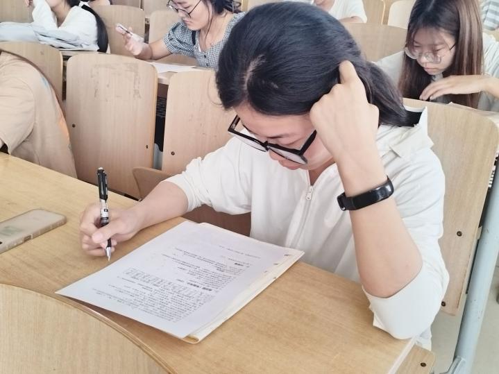 参赛选手们通过赛前的充分准备,沉着冷静、胸有成竹地展现着自己丰富的知识储备。参赛选手或低头沉思,或奋笔疾书,展现出对传统文化知识的尊重与热爱。
