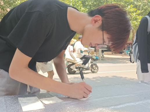 路过的同学们纷纷走到留言区,拿起纸笔,写下对父亲的赞美、感激、祝福,还有那些与父亲共同经历的难忘回忆。“爸爸,您辛苦了,我会努力学习,不辜负您的期望”“父爱如山,感恩有您,愿您永远健康、快乐”“爸爸,我爱您”……简短的话语表达了对父亲最真挚的情感。