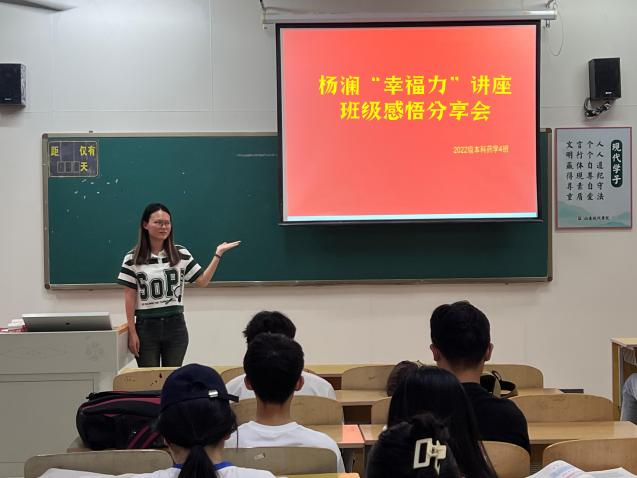 除此以外,药学院部分班级还进行了互动讨论,就如何提升个人幸福力、如何在生活中践行幸福理念等问题进行了深入探讨。大家纷纷表示,通过此次分享会,不仅收获了知识和感悟,也收获了勇敢面对生活的勇气。