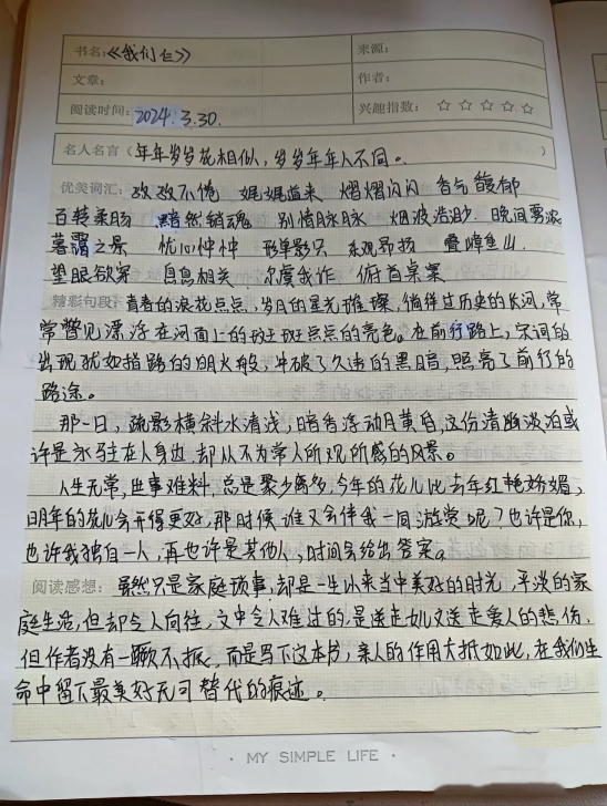 评选现场,同学们的作品琳琅满目,各具特色。有的读书笔记字迹工整,条理清晰,展现出同学们严谨的治学态度;有的读书笔记图文并茂,色彩丰富,生动展现了书籍中的精彩内容;还有的读书笔记充满了个人感悟和独特见解,让同学们在阅读中感受到了不同的思考和启示。