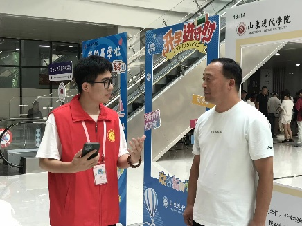 志愿者:“您好家长!请问您刚来学校对学校的初印象是什么呢?”