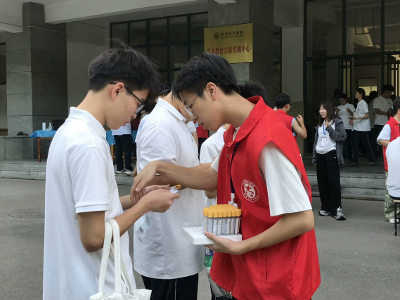 志愿者们在此次体检活动中成为了一道亮丽的风景线。他们提前到达体检现场,为新生们指引路线、解答疑问、在等待区为新生们提供了温馨的陪伴和聊天,缓解新生在等待时的紧张情绪。志愿者们的热情服务和无私奉献,让新生们感受到了药学院的温暖和关怀。