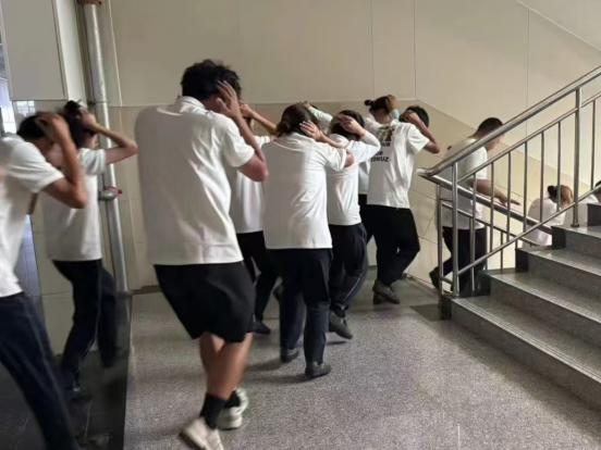 随着警报声的响起,两学院的学子迅速响应,在教师们的引导下,有序地撤离教室,并沿着预定的疏散路线移动向安全区域。疏散过程中,所有人保持镇定,遵从指挥。