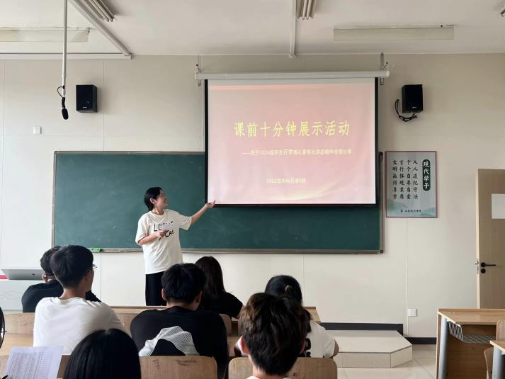 为了深入学习董事长刘春静在2024级新生开学典礼上的“祝你铮铮,祝你昂扬”主题讲话精神,进一步激发新学期现代学子的学习热情与使命感,药学院各班级在近期积极开展“课前十分钟”展示活动。
