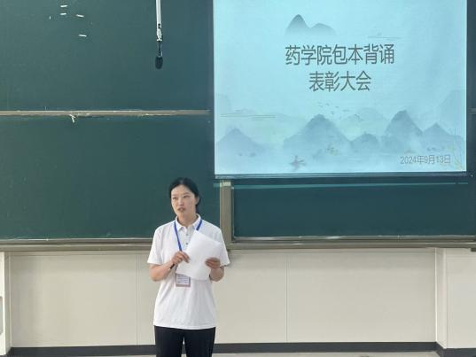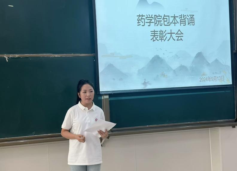 为弘扬中华优秀传统文化,激发学生对国学经典的热爱,药学院于近期在德润楼502室举行“国学经典包本背诵”表彰大会。