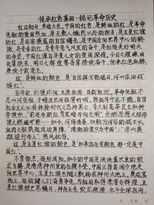 作品中,同学们不仅回顾了革命历史,更深刻理解了革命先烈们不畏强敌、英勇奋斗的精神。他们通过文字,将“一二·九”运动、“五四运动”等历史事件中的英雄事迹生动再现,表达了对革命先烈的敬仰之情,同时也表达了自己作为新时代青年的使命感和责任感。