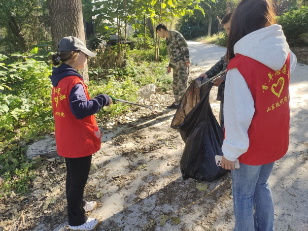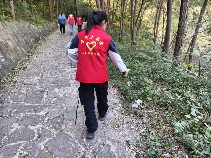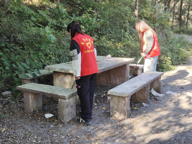 在登高的过程中,志愿者们相互配合,积极开展了义工活动。他们手持垃圾袋,认真地捡拾着沿途的垃圾,用自己的实际行动为保护环境贡献力量。