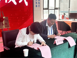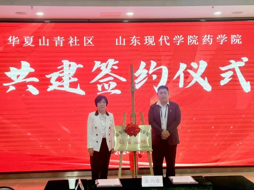 双方共同签订《山东现代学院药学院团支部与华夏山青社区结对共建协议书》。