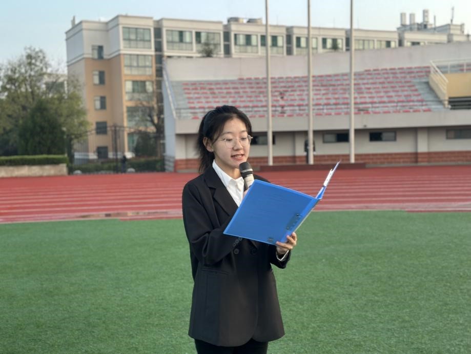 仪式第二项,学生代表李汶航在国旗下演讲。