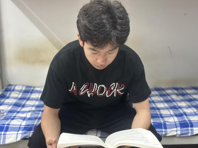 活动期间,药学院学子们每晚利用睡前一小时的时间,手捧书卷,沉浸在书海中。