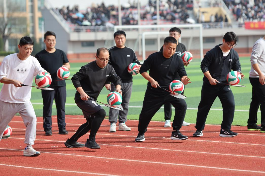 50米托球赛道上,教职工们眼神坚定、奋力冲刺,尽显对胜利的渴望,展现出了满满的活力与激情。