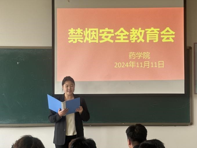 为进一步加强校园安全管理,营造健康、文明的校园环境,11月11日,药学院在德润楼401室开展禁烟安全教育会。