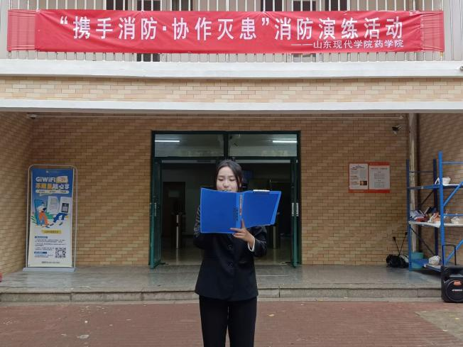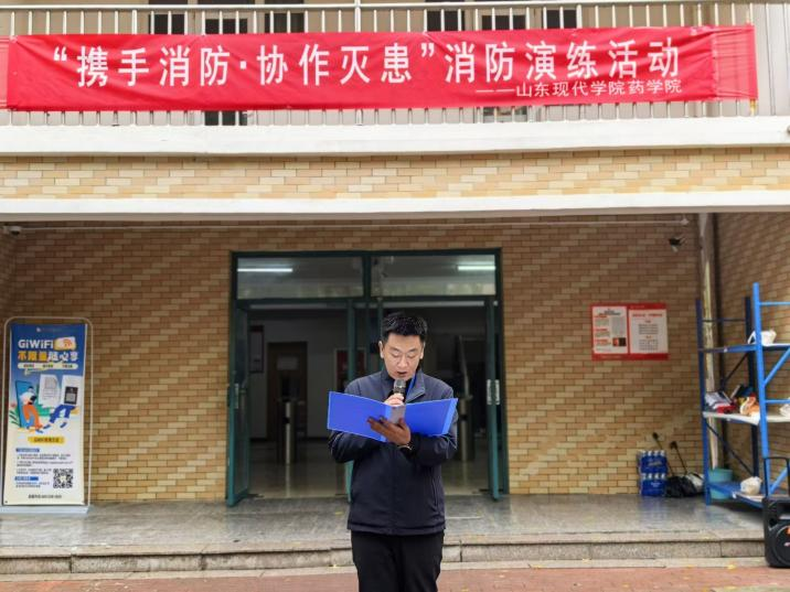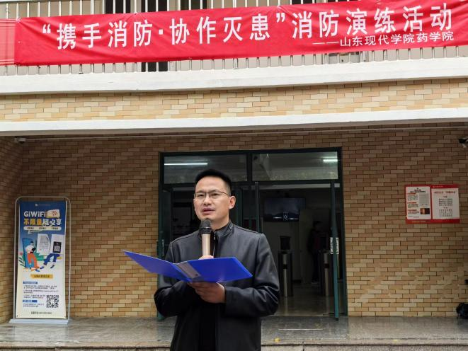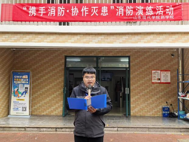 演练伊始,山东现代学院医学院学管就业秘书刘通发表了动员讲话。他着重强调了消防安全在校园生活中的至关重要性,指出每位学生都应具备基础的消防技能,熟悉火灾逃生的必要知识,从而确保个人生命安全及校园财产的保护。