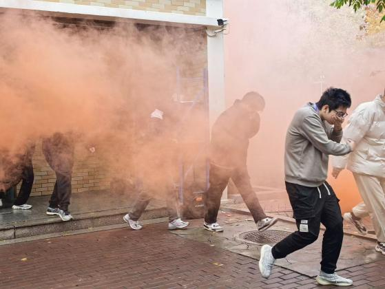 演练模拟了火灾场景,随着警报声的响起,滚滚浓烟弥漫开来。药学院师生迅速反应,按照预定的疏散路线,捂住口鼻,弯腰低姿,有序而迅速地撤离至安全区域。