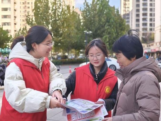 仪式结束后,药学院学生志愿者开展了社区志愿服务活动。活动中,志愿者们共分为三组,分别进行了社区义诊、电信网络防诈骗宣传和卫生清理工作。
