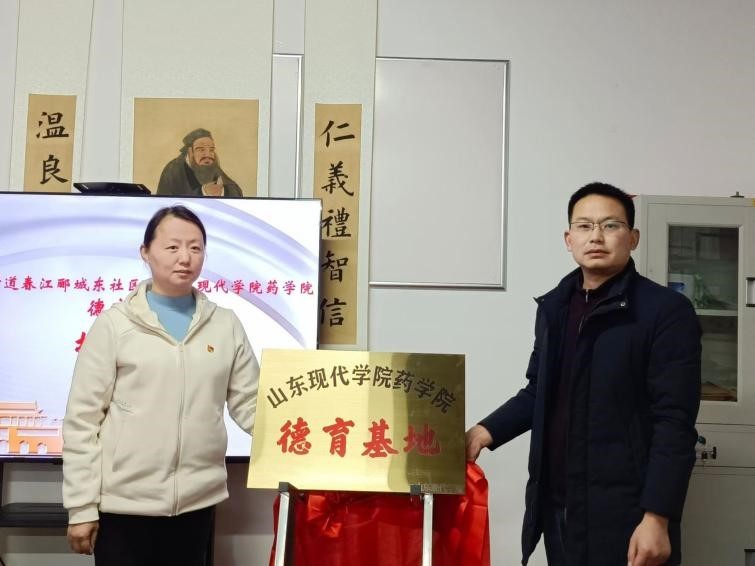 双方共同为“山东现代学院药学院德育基地”揭牌