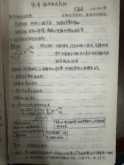 同学们都踊跃报名、积极参与,展示出了许多优秀的笔记。形式内容丰富多样的笔记显示了药学院学生们活跃创新的思维和各具特色的学习方法,认真工整的笔记展现了学生们严谨勤奋的学习态度。