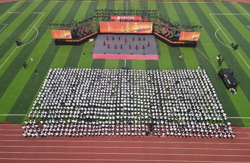 千余名现代学子齐声吟咏,不仅体会到了“中庸之道”的深刻内涵,更在心灵深处种下了和谐、中庸的种子。