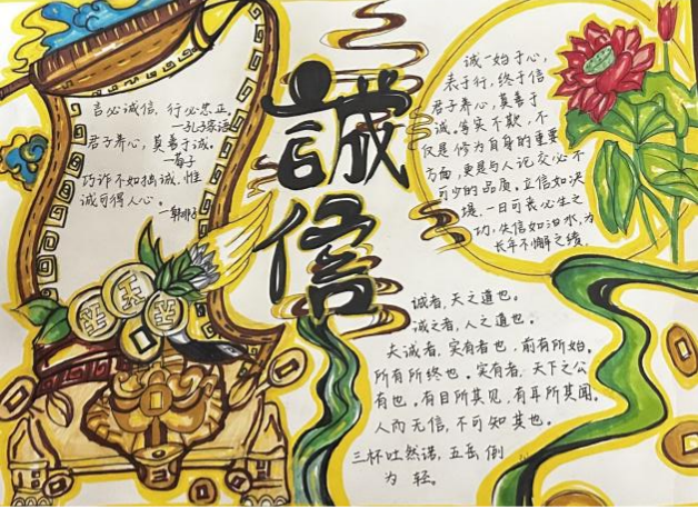 选手们充分发挥想象力和创造力,围绕“诚信”这一主题,创作出一幅幅精美的手抄报作品。