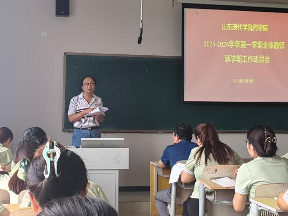为系统安排新学期教学任务,统一思想,共同促进药学院教学工作高质量发展,近日,药学院在德润楼401室召开全体教师新学期教师教学工作动员会。药学院院长李峰、常务副院长刘玉芹、教务主任徐佳馨、各专业负责人及全体教师参加会议。
